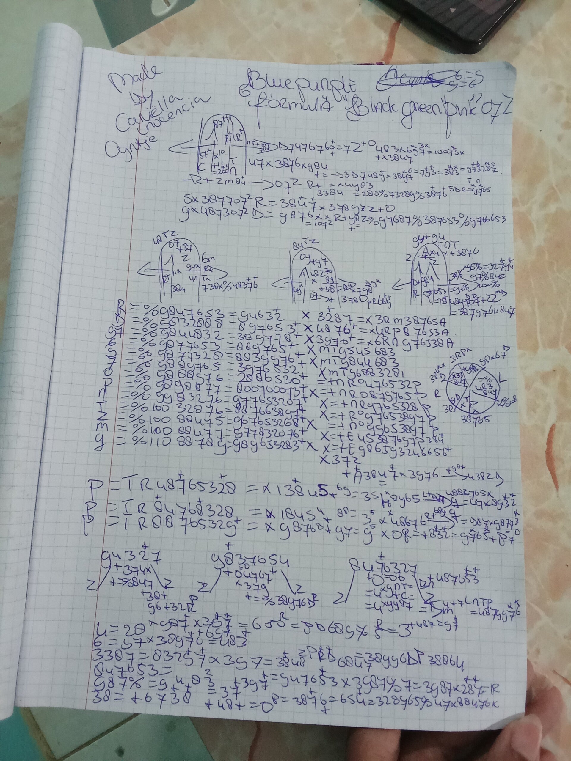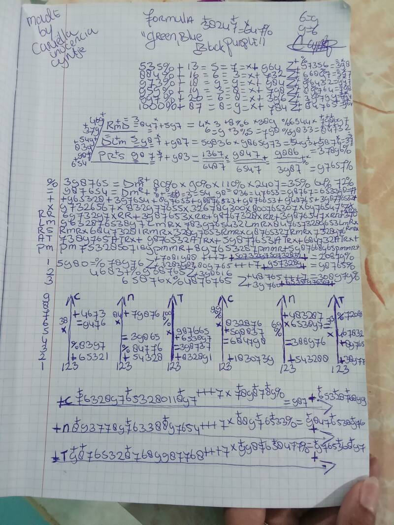 D747676"X"BOVEN 0 "+" BENEDEN=7Z+O ,. BLUEPURPLE FORMULA "BLACK GREEN "PINK" O7Z.