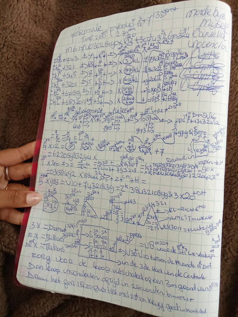 EERDER HAD IK EEN PAARSE SCHRIFT , WAARIN IK FORMULA HEB GECREEËRD GENAAMD ZOALS , SOL, UN , UV , AMG , DUS BIJ HET CREËEREN VAN DEZE FORMULA GROENE SCHRIFT , DACHT IK AAN , IK WIL EEN SOORT VAN , VERNIEUWDE STUK " HET WAS VEEL NADENKEN EN GOED KUNNEN CONSENTREREN, BTW MIJN DOCHTER CHARKEYLI JUSTINA SOERALY CIJNTJE, WAS ER OOK BIJ HIER OP CURACAO IN MIJN KAMER OP MIJN BED SAMEN MET MIJ , TIJDENS HET CREËEREN VAN EEN PAAR VAN DEZE FORMULA.
