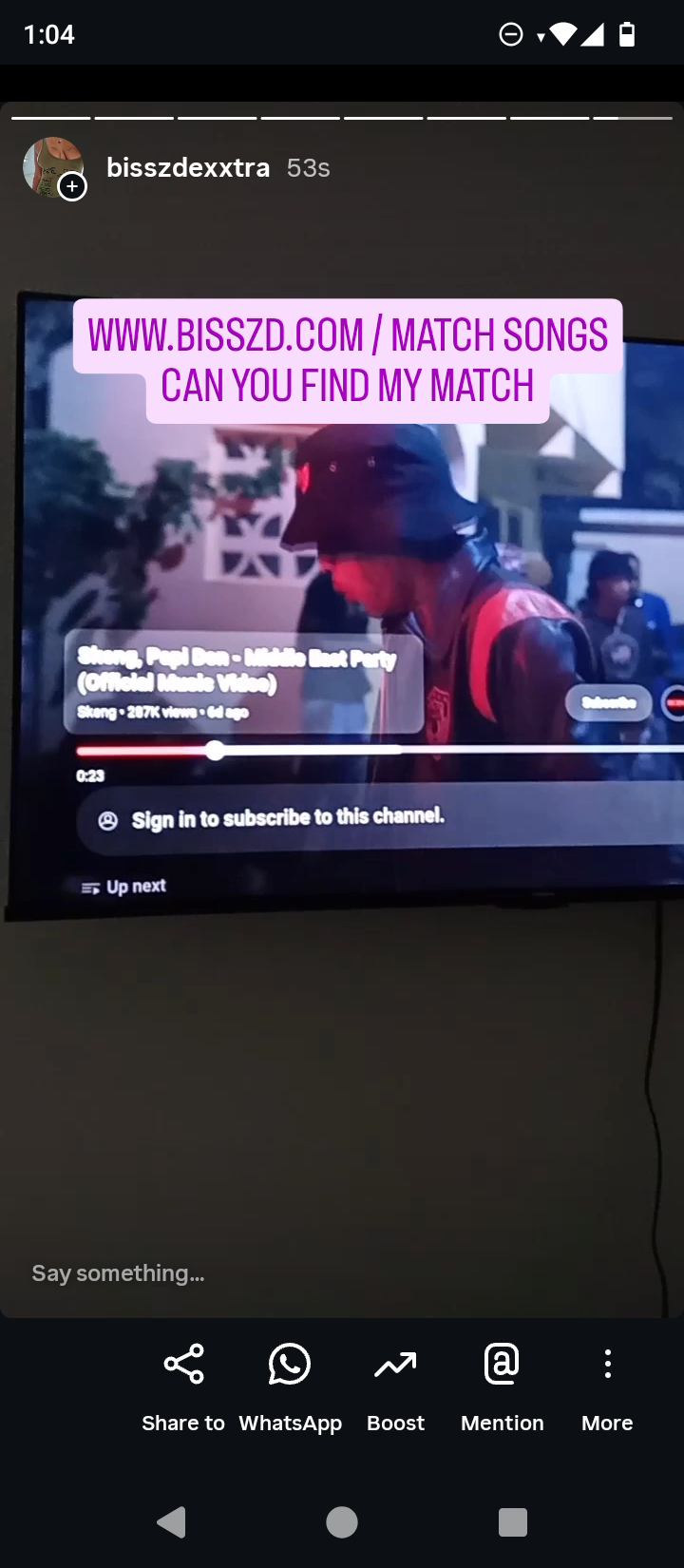 SO IT MEANS MY MATCH SONG IS NOW PLUS MY TEXT "IM ABOVE YOU" " WE GOT ANOTHER ONE TELL ME ARE YOU IT SOMEBODY.