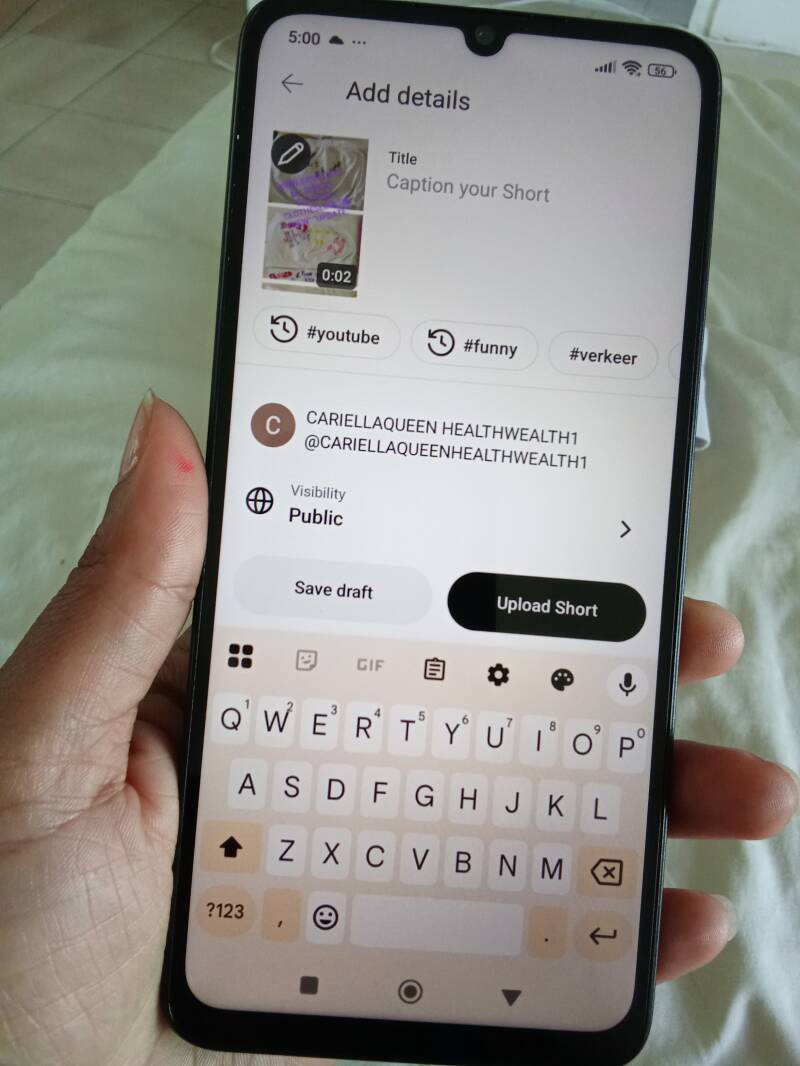 NORMAL GESPROKEN ZOU JE DE UPLOAD SHORTS IN HET ZWART MOETEN ZIEN ZOALS JE BOVEN KAN ZIEN , OP DE ANDER TELEFOON , YOUTUBE CHANNEL BROWN, . NU MOET IK EERST OP PUBLIC DRUKKEN ZODAT IK AAN DE UPLOAD SHORTS KOM . HEEL GEK. MAAR KIJK GOED NAAR DE VERSCHILLEN ,,, YOUTUBE ZOU ZELF MOETEN WETEN HOW IT SUPPOSED TO BE.