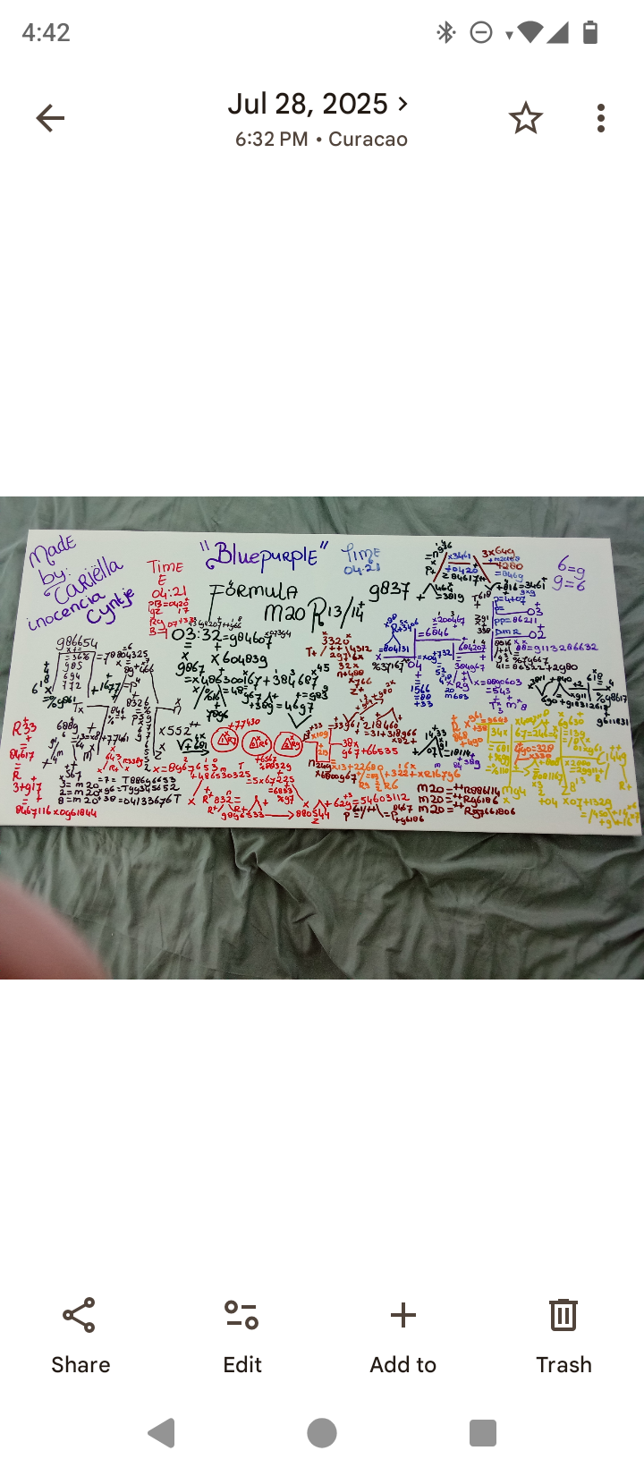 IK CARIËLLA INOCENCIA CIJNTJE ID NUMMER NRL68CD99 HEEFT VANDAAG 12 MAART 2026 BLACKBLUEPURPLE 2+37H3+P69 FORMULE GECREEËRD.