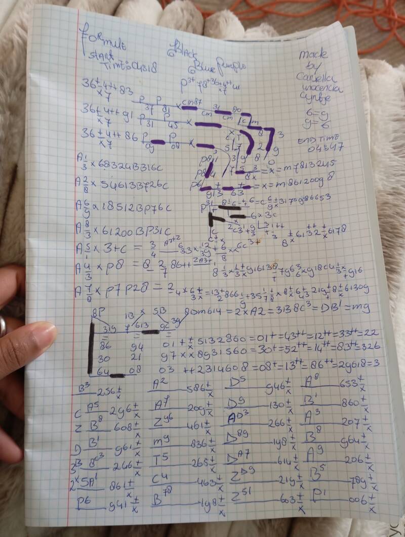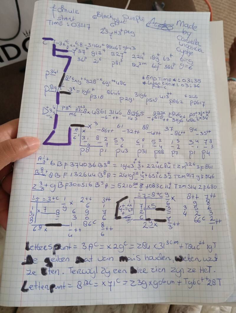 IK CARIËLLA INOCENCIA CIJNTJE ID NUMMER NRL68CD99 HEEFT VANDAAG 12 MAART 2026 FORMULE BLACKBLUEPURPLE P3+78+36+X47++41 GECREEËRD