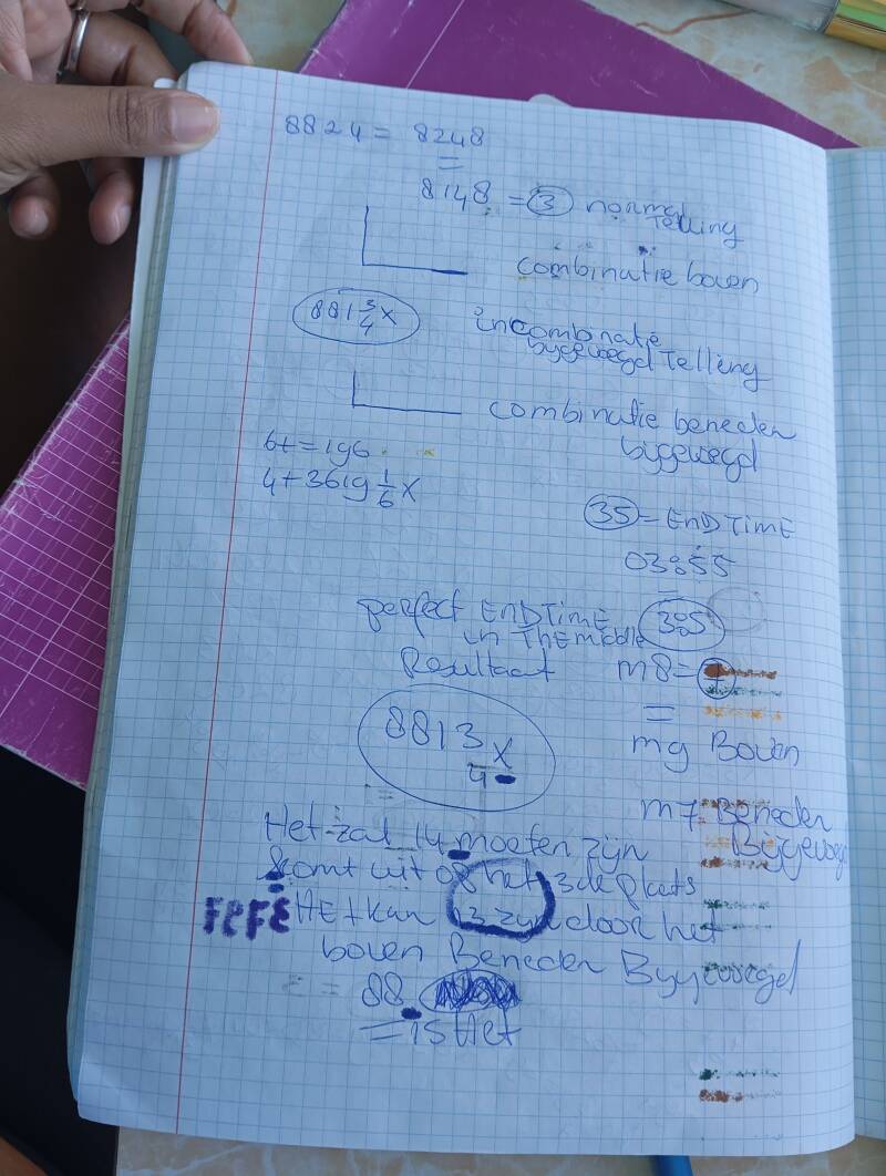 DE END TIME IS SCHUIN VAN BENEDEN NAAR BOVEN NAAR RECHTS. IN HET MIDDEN VAN 5 EN 3 STAAT EEN 0 DAT IS HET LOGICA BEREIKEN , AANGEZIEN ER 2X DE 0 RECHTS VAN DE 5 EN DE 8 STOND ALS END TIME EN STAAT HET 0 NU ALS "IN DE MIDDEN" . GOED EN DAN ZIE JE DE 3 NUMMERS RECHTS VAN 3 DUS HET 179,,,,, WAT ALS DX3 HET START PUNT GOED TE ZIEN IS , ,, EN 179 VORMT DAN HET 8 ALWEER ,,, ZOALS IK EERDER SCHREEF HET WORD EEN DUBBEL GETAAL DUS DAN ZIE JE IN DE FORMULA DE 800. ZODAT JE GOED KAN ZIEN : "ZEG MIJ WAT HEB IK UITGEVONDEN BINNEN DE TIJD.