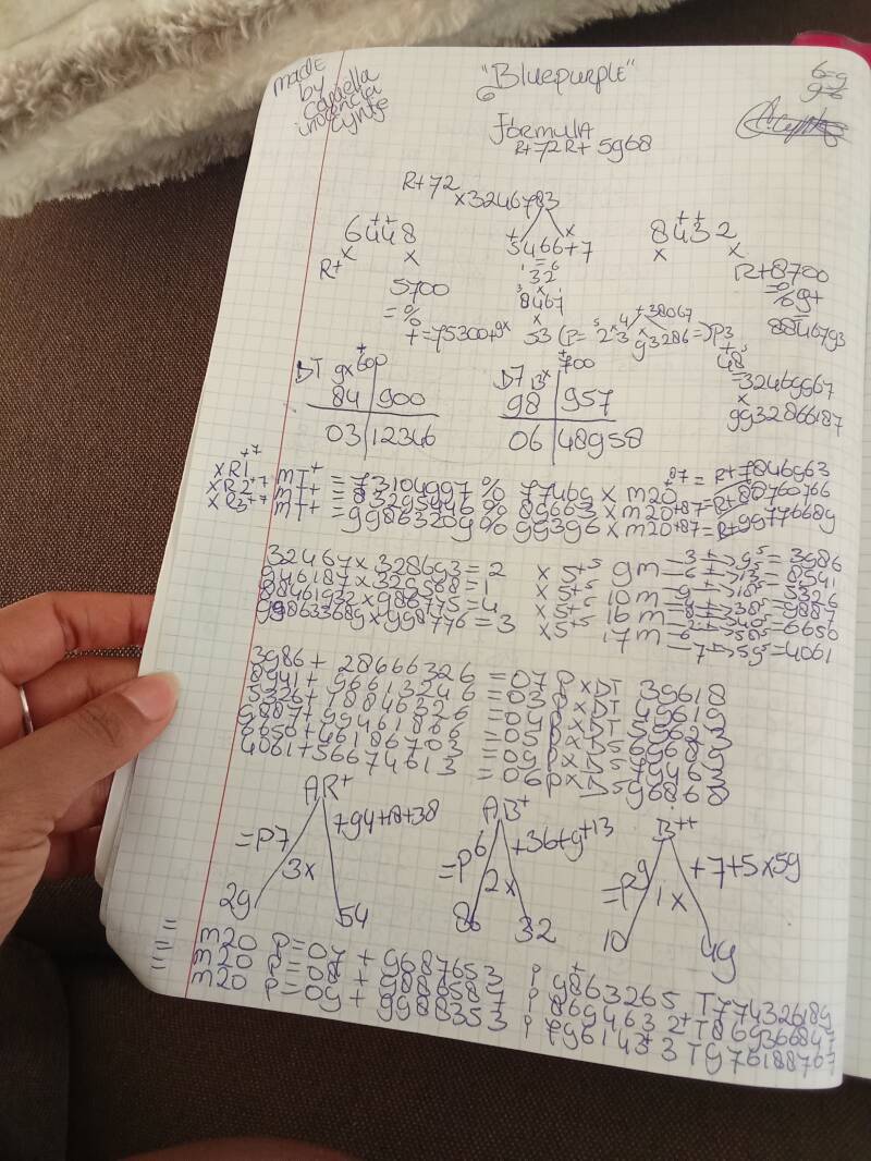"FULL 12 FORMULA "BLUEPURPLE" PAARSE SCHRIFT. MADE BY MYSELF CARIËLLA INOCENCIA CIJNTJE ID NUMMER NRL68CD99. IN 2025 " . UPCOMING 2026.